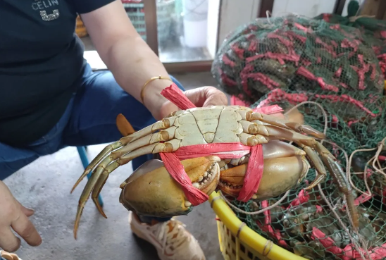 在银湖湾滨海新区一养殖场,养殖户正忙于捆扎生猛的蟹准备出货。养殖户介绍,随着养殖技术的不断进步,他们采取分批投苗的方式,可实现膏蟹全年连续供应。