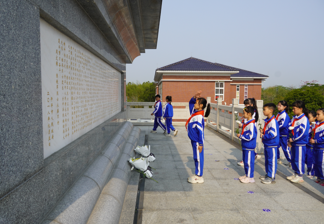 在烈士纪念碑前,全体人员整齐列队,怀着崇敬的心情瞻仰烈士纪念碑。随后,全体肃立、默哀、鞠躬并敬献鲜花,学生集体献唱《中国少年先锋队队歌》,铿锵有力的歌声,表达出对革命先烈深深的敬仰与缅怀之情。