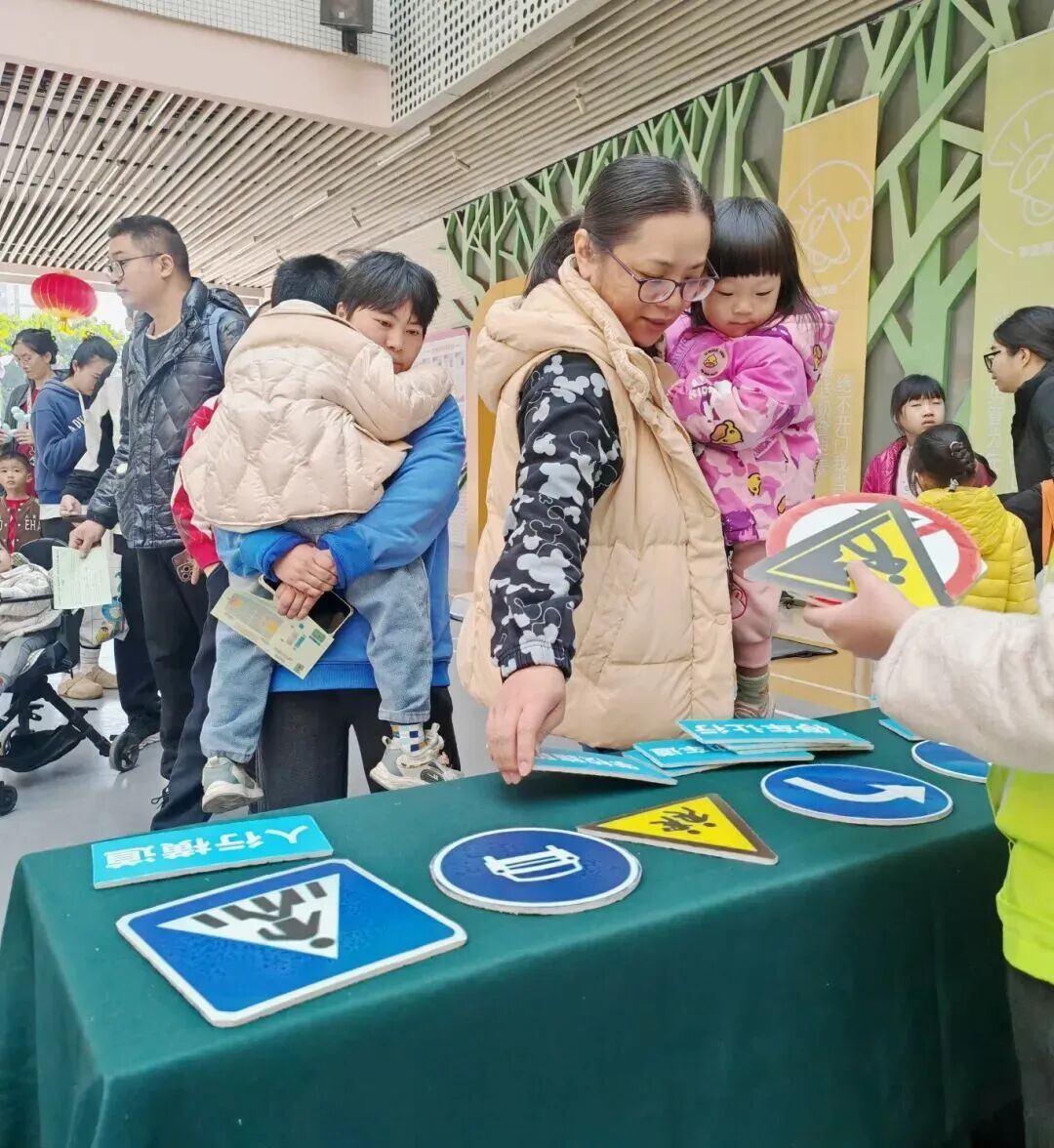 游园活动的8个特色体验项目,分别对应不同类别的安全知识,如:“预警信号我知道”“交通标志对对碰”“小小拆‘诈’专家”等。现场还设置了消防器材、急救训练器等教具,让亲子家庭在实操中学习避险、急救技能,将安全认知有效转化为应急能力 ,实现了“玩中学、学中会”,让“安全教育活起来”。